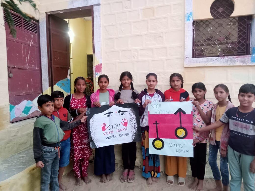 Elles ont participé à une opération de sensibilisation très forte pour stopper les violences faites aux femmes. Le Radjasthan est malheureusement deuxième au classement indien du nombre de violences faites aux femmes.